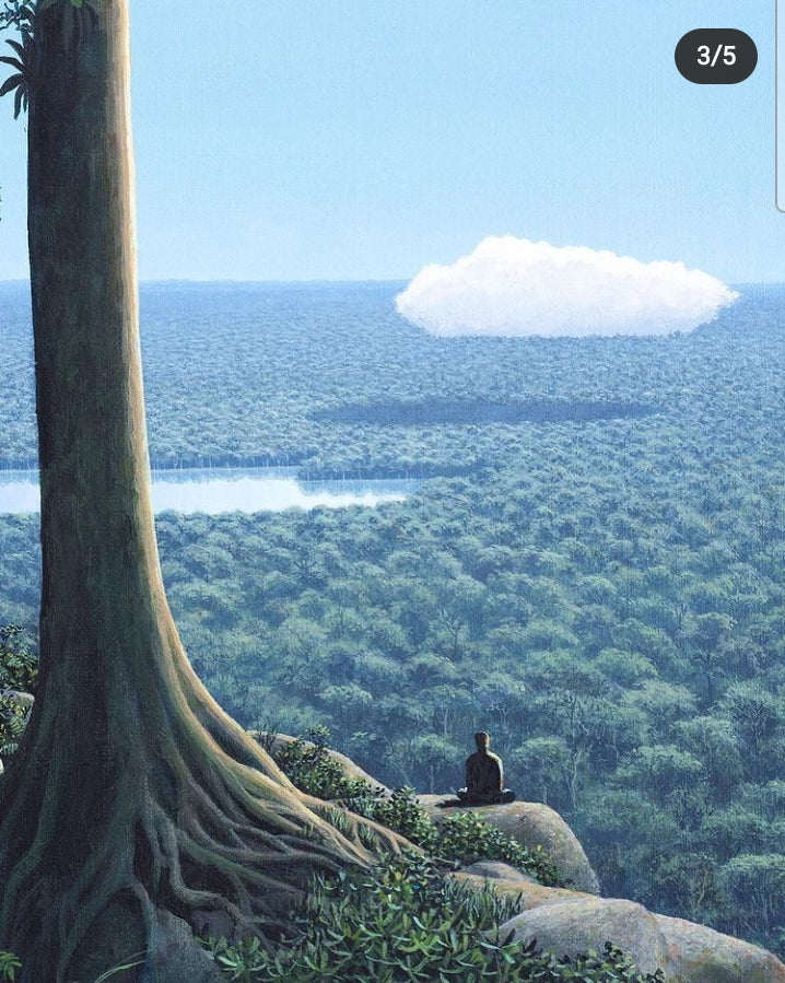 I want to capture the energy of the painting “Contemplador de laguna y nube” by Tomas Sanchez. I will convey this energy through sharing the question I ask myself during reflection. This will be hand stitched into the back of the garments.