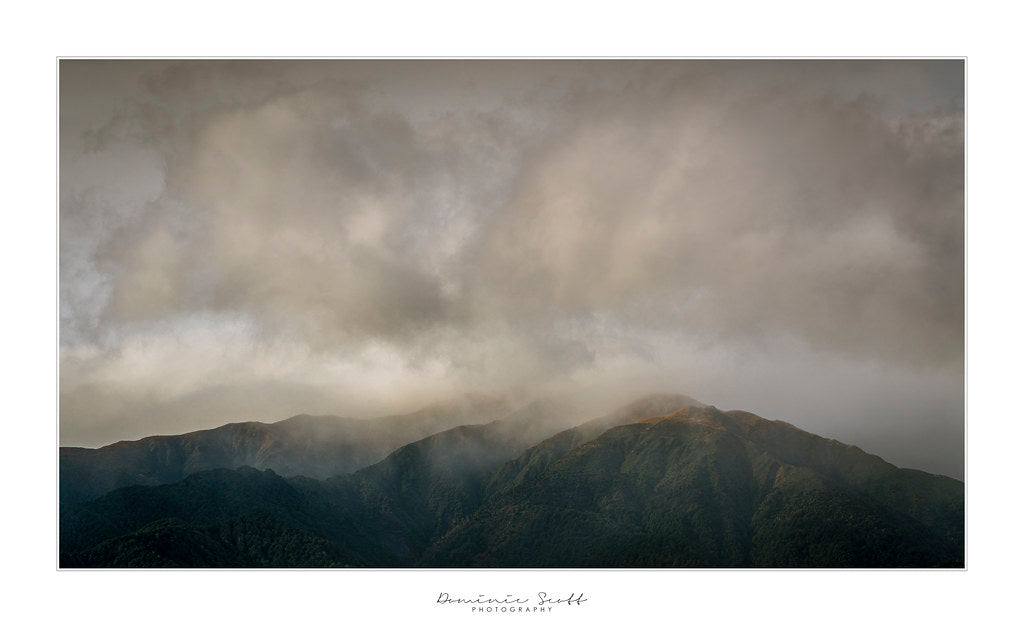 I based my collection off the photo Dominic Scott took of Ruahine Range in New Zealand. (between Hastings and Palmerston North.) The photo will be represented in the garments through splitting the body into 2 parts; sky = shirt, mountains = trousers. The outfits will follow the photograph rule of thirds, by cutting the body into thirds. The top third will be for the shirts, and the bottom two thirds for the trousers. The clouds will be mimicked through the use of knit fabrics with a light colour palette of greys, creams and khaki. The mountain range is captured in a woven fabric, it shows structure and permanence. The palette is made up of dark greens.