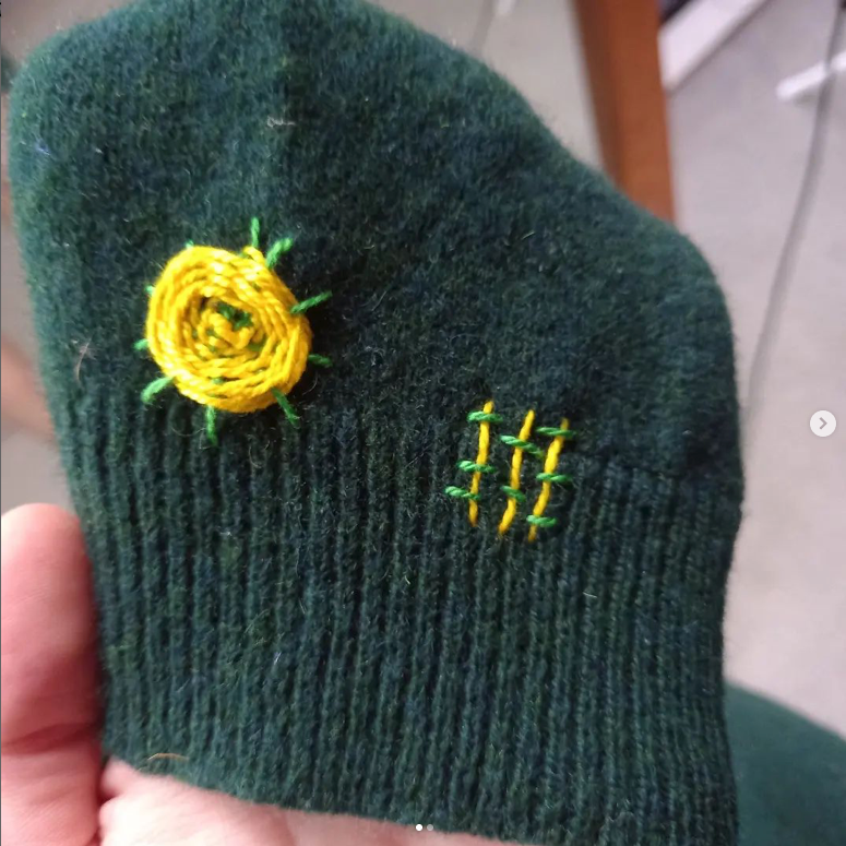 Visible mending is one of my favourite repair techniques. Instead of concealing a garment’s flaws and striving to restore it to a state of “perfection,” this approach invites us to celebrate the life of the garment, it encourages us to find beauty in imperfections and embrace the concept of impermanence.